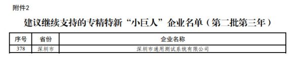 ]]>The post 通用測試再獲“繼續支持的專精特新‘小巨人’企業” first appeared on 深圳市通用測試系統有限公司.
