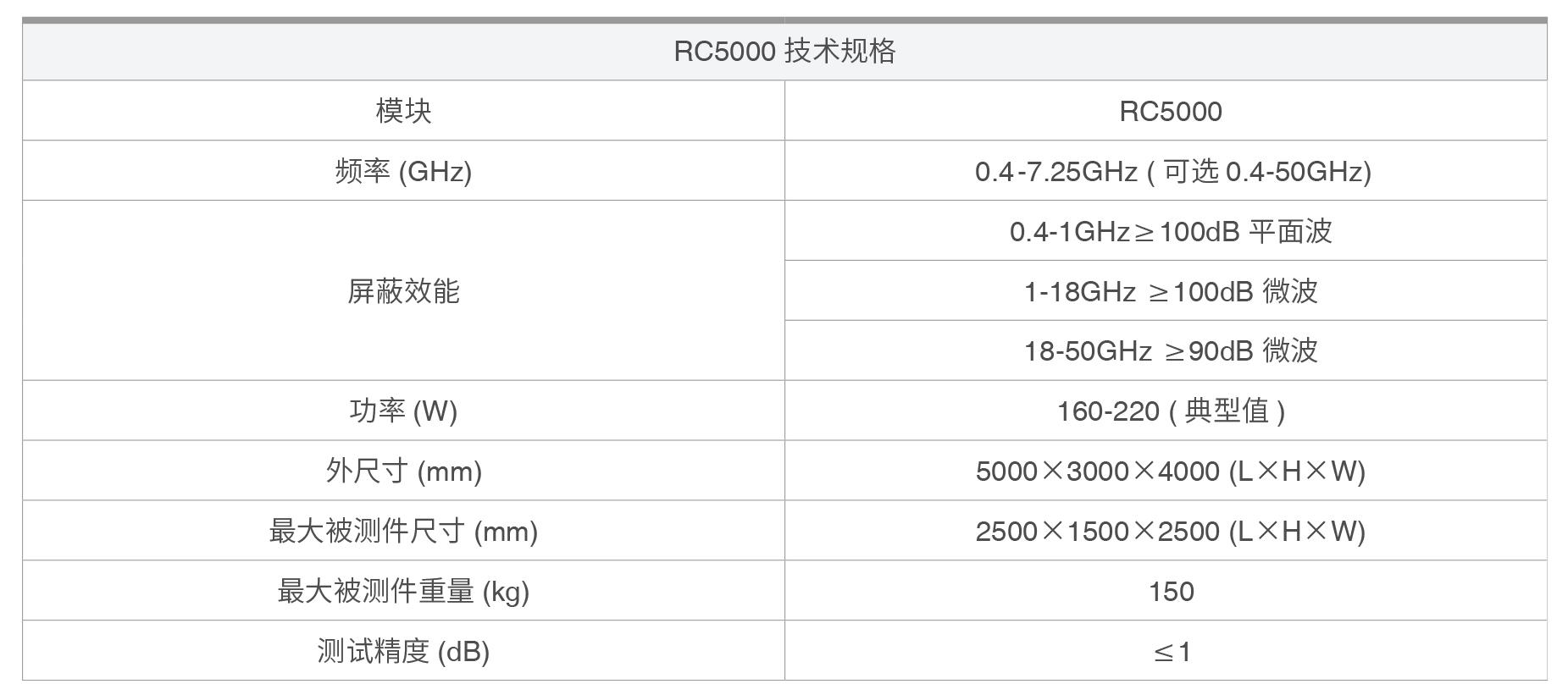 RC5000混響室由反射的金屬墻壁、轉臺、水平攪拌器和垂直攪拌器構成。各種反射在混響室中形成多徑反射環境,通過轉臺和攪拌器的移動或者轉動,使其中的電磁場從各個方向疊加,從數學統計上表現為各個方向平面波疊加,實現數學意義上的靜區。
